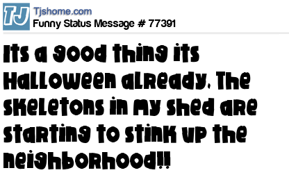 X is Its a good thing its Halloween already, The skeletons in my shed are starting to stink up the neighborhood!!