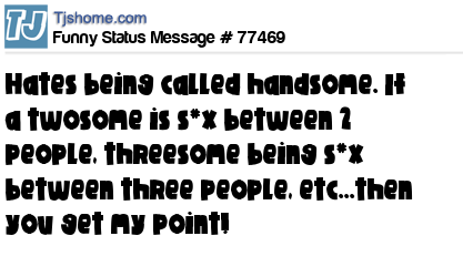 - # 67861 If sex between 3 people is called a Threesome and sex between 2 people is called a Twosome... Why is Handsome still a compliment?