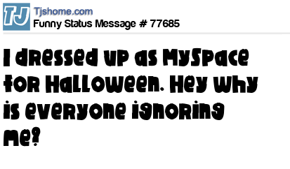 X is I dressed up as MySpace for Halloween. Hey why is everyone ignoring me?