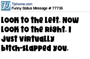 - # 76101 Look to the left. Now look to the right. Guess what? I just virtually slapped you :)