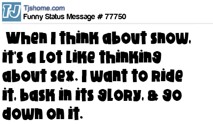 X When I think about snow, it's a lot like thinking about sex. I want to ride it, bask in its glory, & go down on it.
