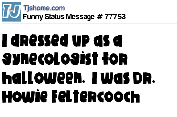 X I dressed up as a gynecologist for halloween. I was Dr. Howie Feltercooch
