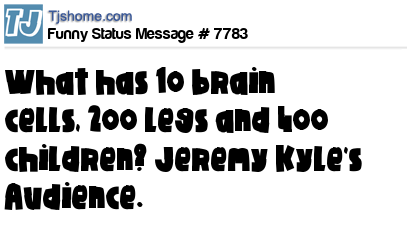 X What has 10 brain cells, 200 legs and 400 children? Jeremy Kyle's Audience.