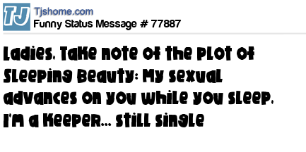 X is Ladies, Take note of the plot of Sleeping Beauty: My sexual advances on you while you sleep, I'm a keeper... still single