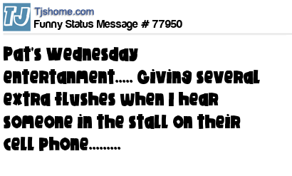 X is Pat's Wednesday entertanment..... Giving several extra flushes when I hear someone in the stall on their cell phone.........