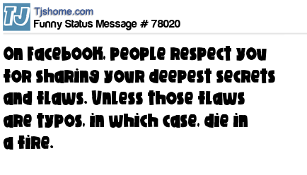X On Facebook, people respect you for sharing your deepest secrets and flaws. Unless those flaws are typos, in which case, die in a fire.