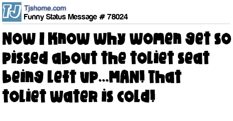 X is Now I know why women get so pissed about the toliet seat being left up...MAN! That toliet water is cold!
