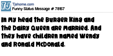 X In my head the Burger King and the Dairy Queen are married. And they have children named Wendy and Ronald McDonald.