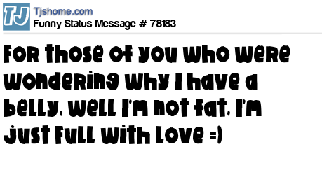 X says For those of you who were wondering why I have a belly, well I'm not fat, I'm just Full with love =)