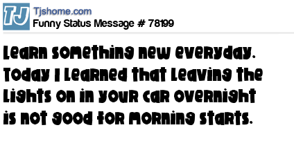 X Learn something new everyday. Today I learned that leaving the lights on in your car overnight is not good for morning starts.