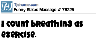 - # 138243 You know you have been married too long when the only heavy breathing going on in the bedroom is when someone uses the exercise equipment.