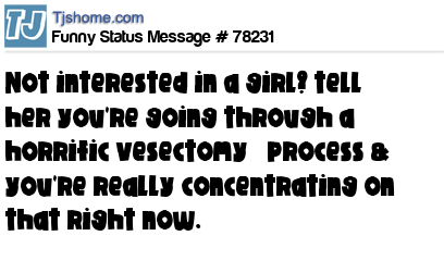 X is not interested in a girl? tell her you're going through a horrific vesectomy process & you're really concentrating on that right now.