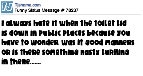 X is I always hate it when the toilet lid is down in public places because you have to wonder, was it good manners or is there something nasty lurking in there.......