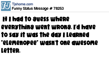 X says If I had to guess where everything went wrong, I'd have to say it was the day I learned "elemenopee" wasn't one awesome letter.