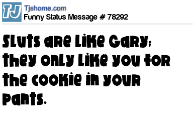X Sluts are like Gary; they only like you for the cookie in your pants.
