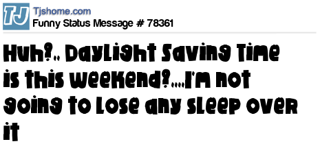 X Huh?,, Daylight Saving Time is this weekend?,,,,I'm not going to lose any sleep over it