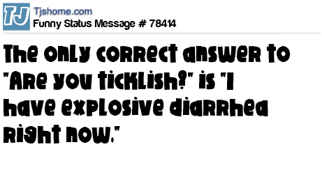 - # 78549 The only correct answer to "Are you ticklish?" is "I have explosive diarrhea right now."