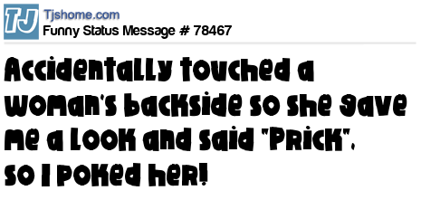 X  accidentally touched a woman's backside so she gave me a look and said "Prick", so I poked her!