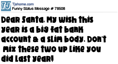 - # 40756 Dear Santa, My wish 4 this year is a big, fat bank account & a slim body. Pls don't mix these 2 up like you did last year!!!!!