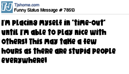 - # 41103 placing myself in "TIME OUT" until I am able to play nice with others! Until then, don't piss me off because I have nothing to lose being in Time Out already!"