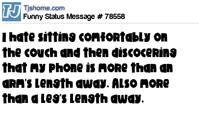 X is i hate sitting comfortably on the couch and then discocering that my phone is more than an arm's length away. Also more than a leg's length away.