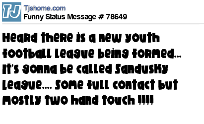 X is heard there is a new youth football league being formed... It's gonna be called Sandusky League.... Some full contact but mostly two hand touch !!!!