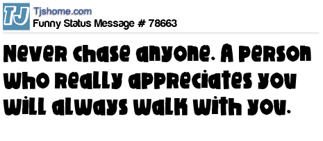 X says Never chase anyone. A person who really appreciates you will always walk with you.