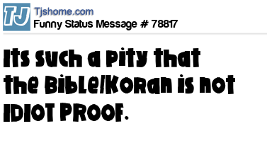 X says Its such a pity that the Bible/Koran is not IDIOT PROOF.