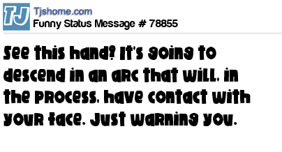 X is See this hand? It's going to descend in an arc that will, in the process, have contact with your face. Just warning you.