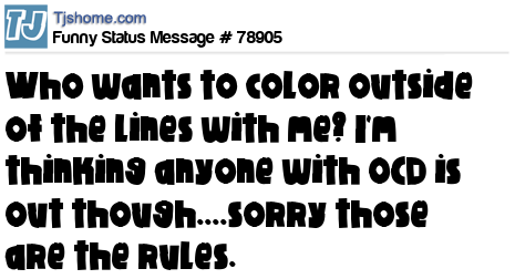 X Who wants to color outside of the lines with me? I'm thinking anyone with OCD is out though....sorry those are the rules.