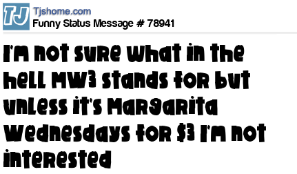 X I'm not sure what in the hell MW3 stands for but unless it's Margarita Wednesdays for $3 I'm not interested