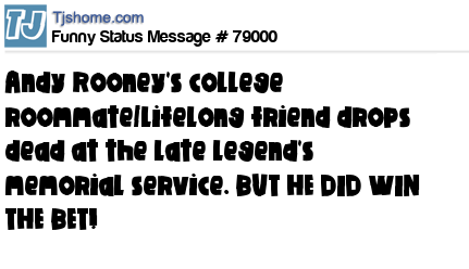 X Andy Rooney's college roommate/lifelong friend drops dead at the late legend's memorial service. BUT HE DID WIN THE BET!
