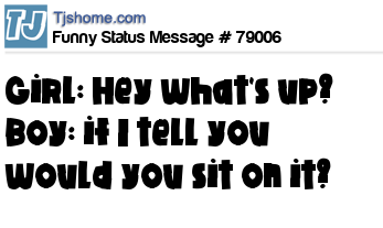 X is Girl: Hey what's up? Boy: if I tell you would you sit on it?