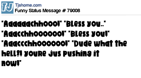 X is "Aaaaaachhooo!" "Bless you.." "Aaacchhoooooo!" "Bless you!" "Aaaccchhoooooo!" "Dude what the hell?! youre jus pushing it now!"