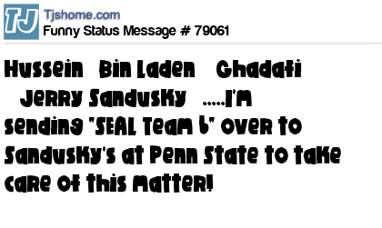 X Hussein☑ Bin Laden ☑ Ghadafi ☑ Jerry Sandusky ☐.....I'm sending "SEAL Team 6" over to Sandusky's at Penn State to take care of this matter!