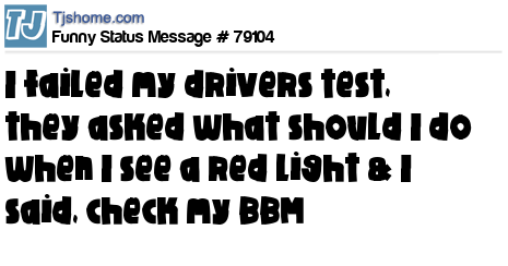 - # 104381 Well I failed my drivers test today. The instructor asked me what I do at Redlights, and I said, "Text and Facebook"