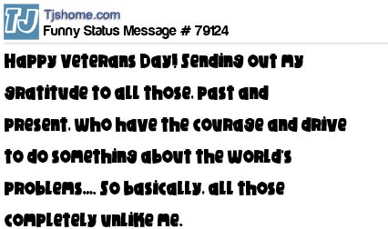 X Happy Veterans Day! Sending out my gratitude to all those, past and present, who have the courage and drive to do something about the world's problems…. So basically, all those completely unlike me.