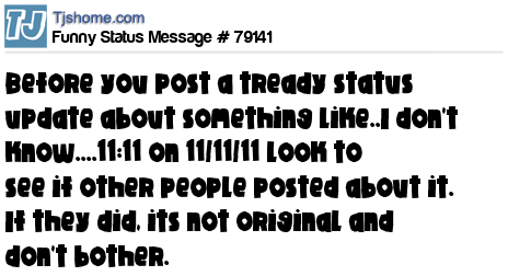 X says before you post a tready status update about something like..I don't know....11:11 on 11/11/11 look to see if other people posted about it. If they did, its not original and don't bother.