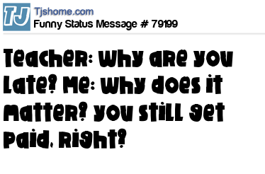 X is Teacher: why are you late? Me: why does it matter? you still get paid, right?