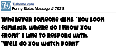 - # 78728 Whenever someone asks, "you look familiar, where do I know you from?" I like to respond with, "Well do you watch porn...?"