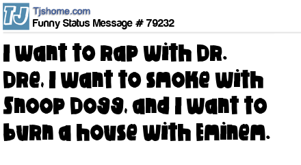 X is I want to rap with Dr. Dre, I want to smoke with Snoop Dogg, and I want to burn a house with Eminem.