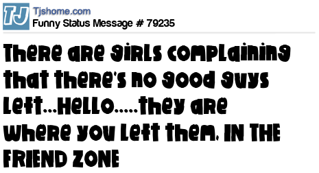 - # 59188 I'm tired of girls complaining that theres no good guys left...hello..they're where you left them, IN THE FRIEND ZONE