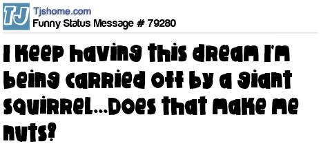 X says I keep having this dream I'm being carried off by a giant squirrel...Does that make me nuts?
