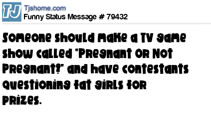 X Someone should make a TV game show called "Pregnant Or Not Pregnant?" and have contestants questioning fat girls for prizes.