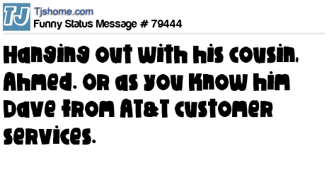 - # 69589 Though I love and embrace all the cultures of the world, I still have to laugh when the guy at the customer service center in India says "What's up, bro? My name's Dave. How's it going?"