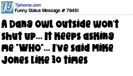 X has A Dang Owl outside won't shut up... It keeps asking me "WHO"... I've said Mike Jones like 30 times