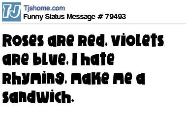 X Roses are red, violets are blue, I hate rhyming, make me a sandwich.