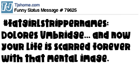 X #fatgirlstrippernames: Dolores Umbridge... and now your life is scarred forever with that mental image.