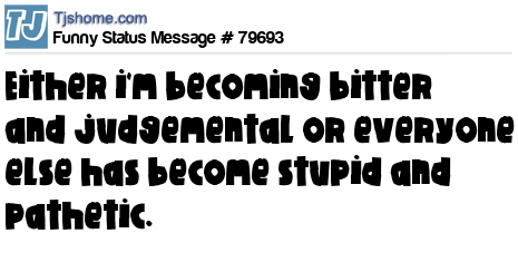 X either i'm becoming bitter and judgemental or everyone else has become stupid and pathetic.