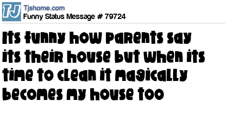 X is Its funny how parents say its their house but when its time to clean it magically becomes my house too
